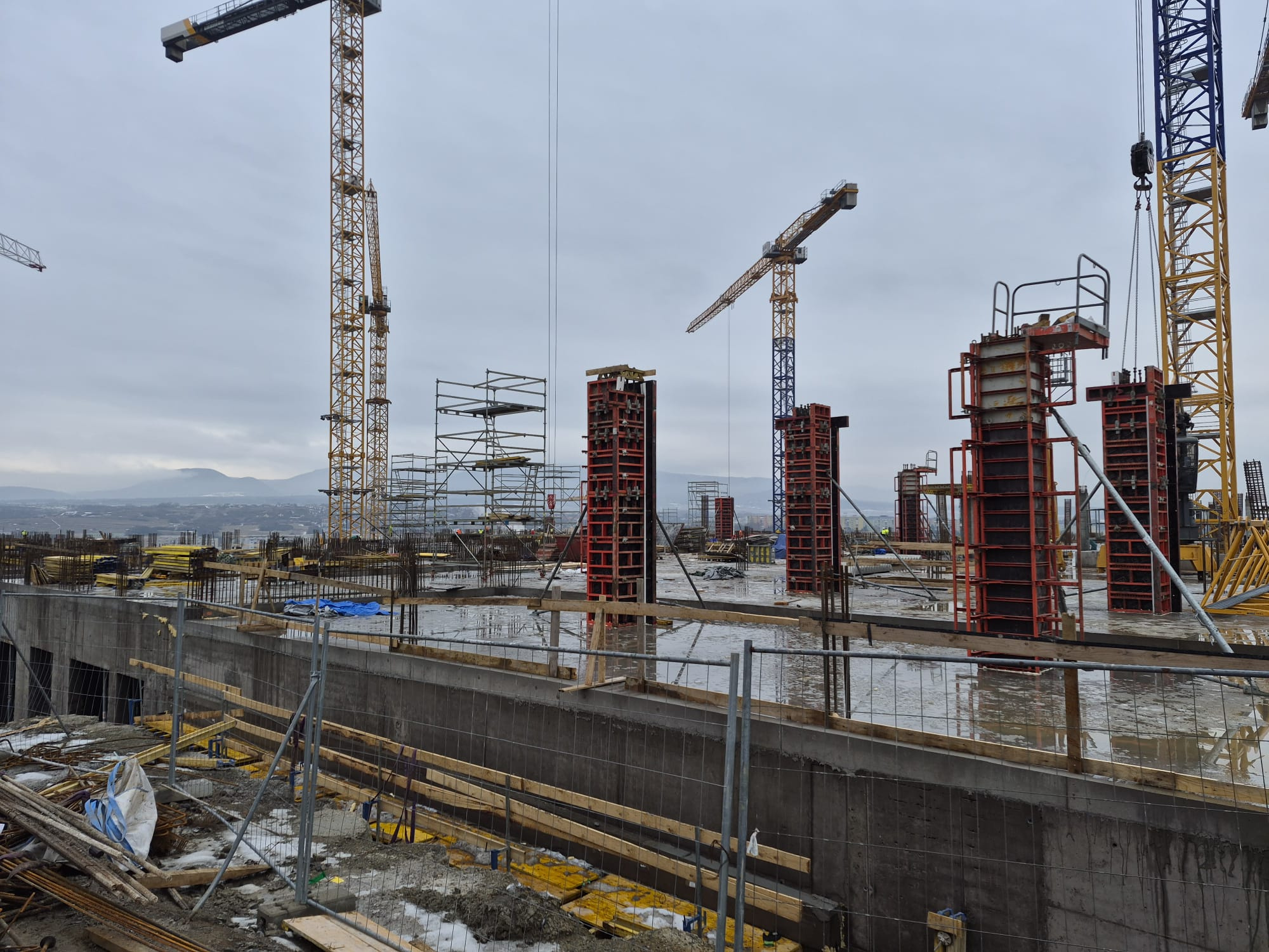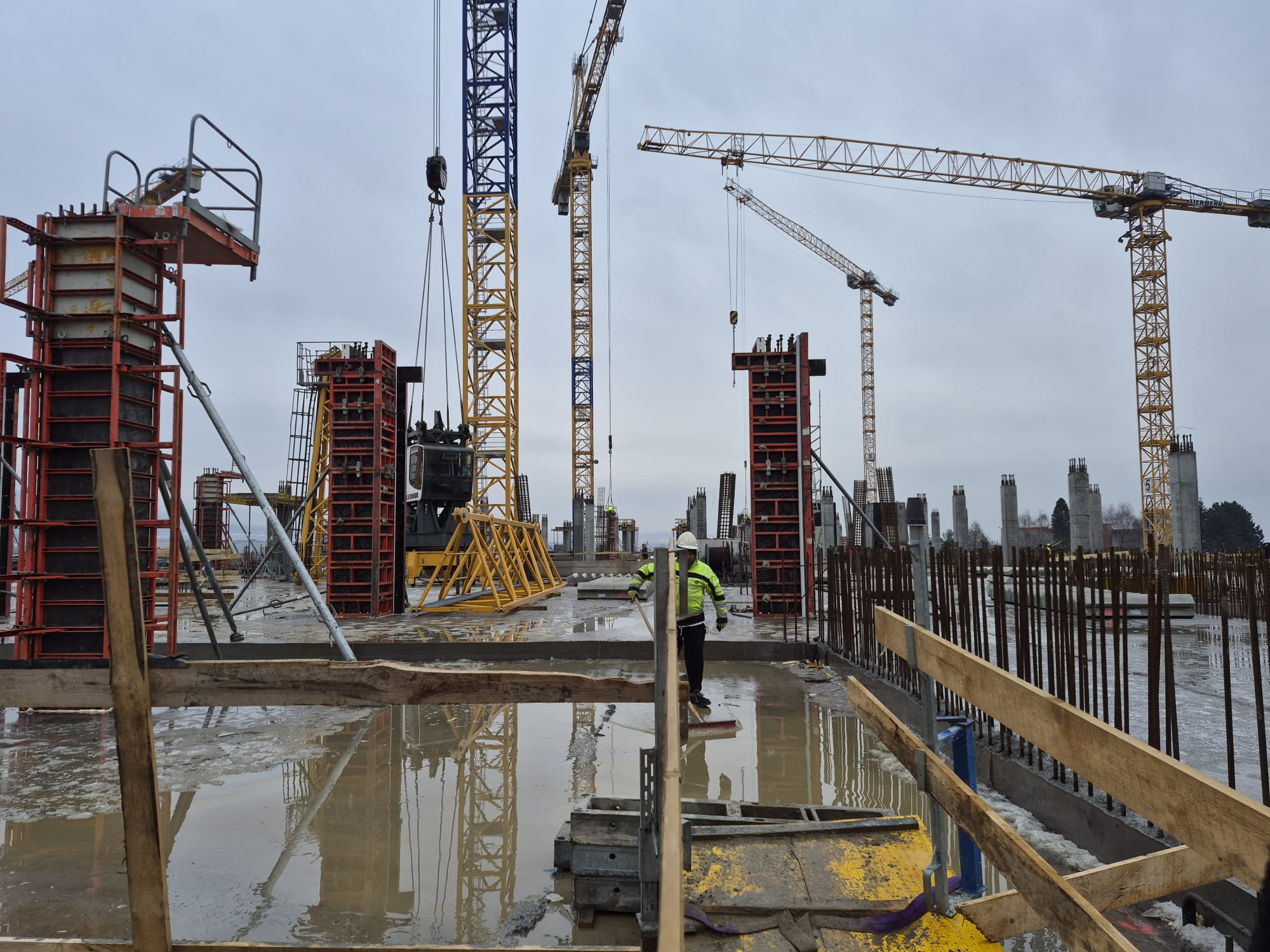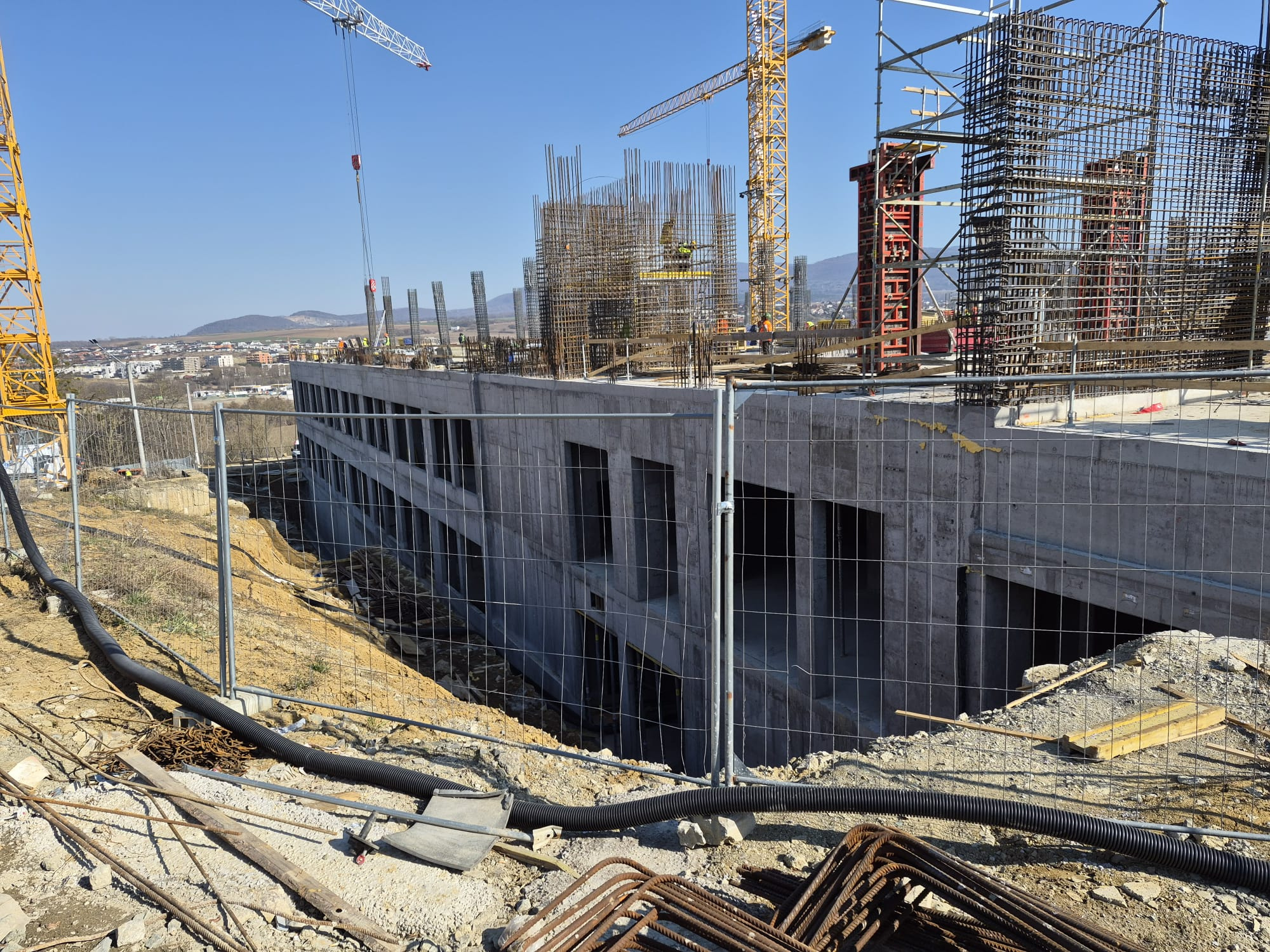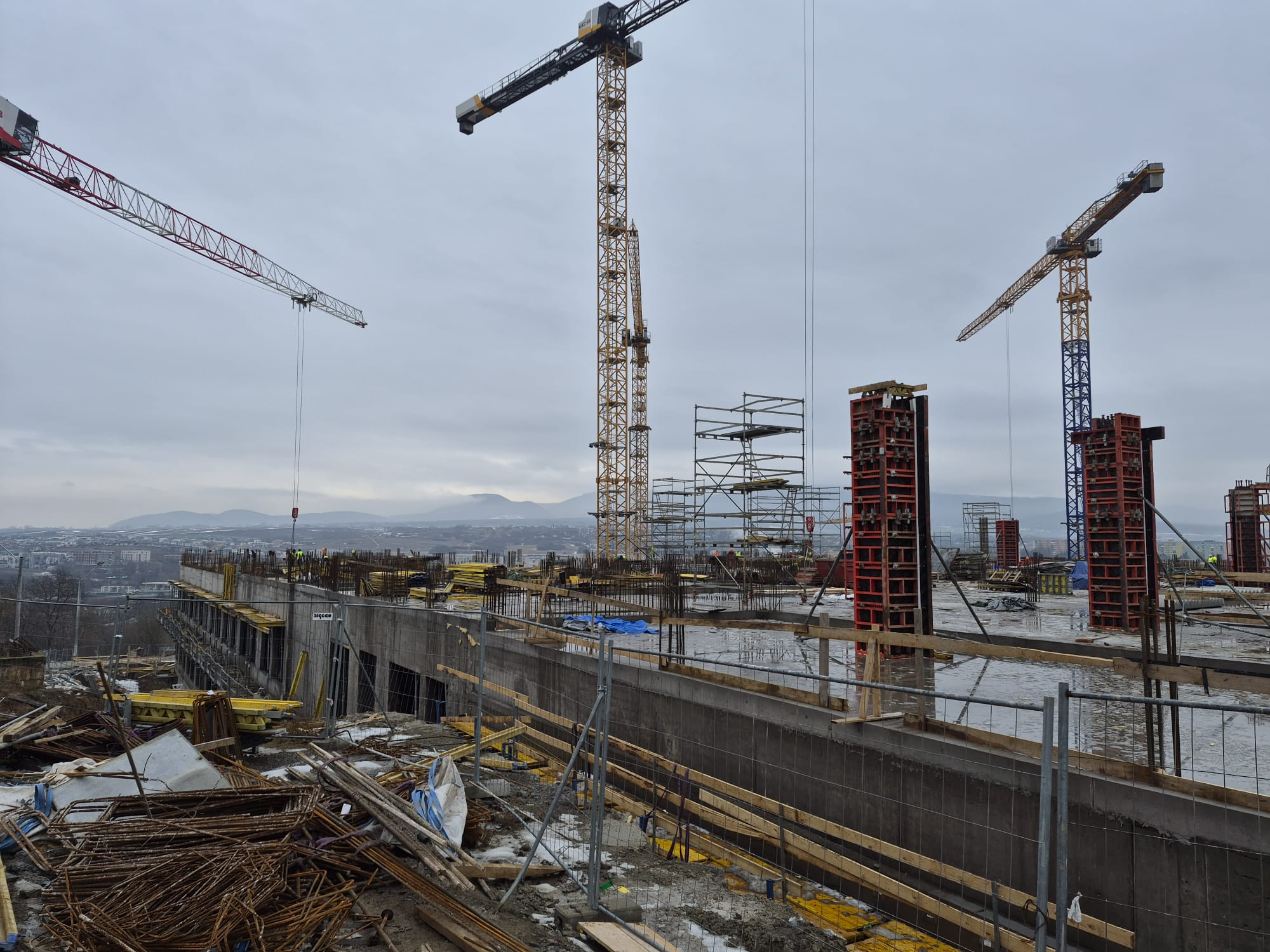 Realizácia hrubej stavby v Prešove, konkrétne viazanie železa, debnenie systémom peri doka, vyhotovenie stlpov, stien a stropov na základe plánov.